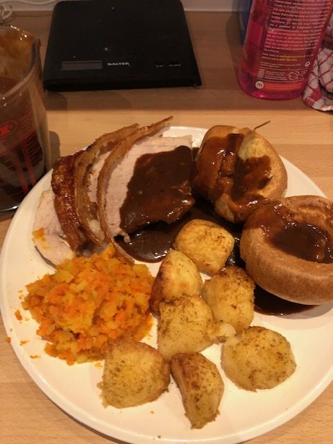 It’s a credible entry – pork and crackling looks decent, yorkies look nice and squidgy – the photo would suggest that the roasties need a bit longer, and a bit of chuffing post parboil, but you know this stupid competition is going to be very subjective.