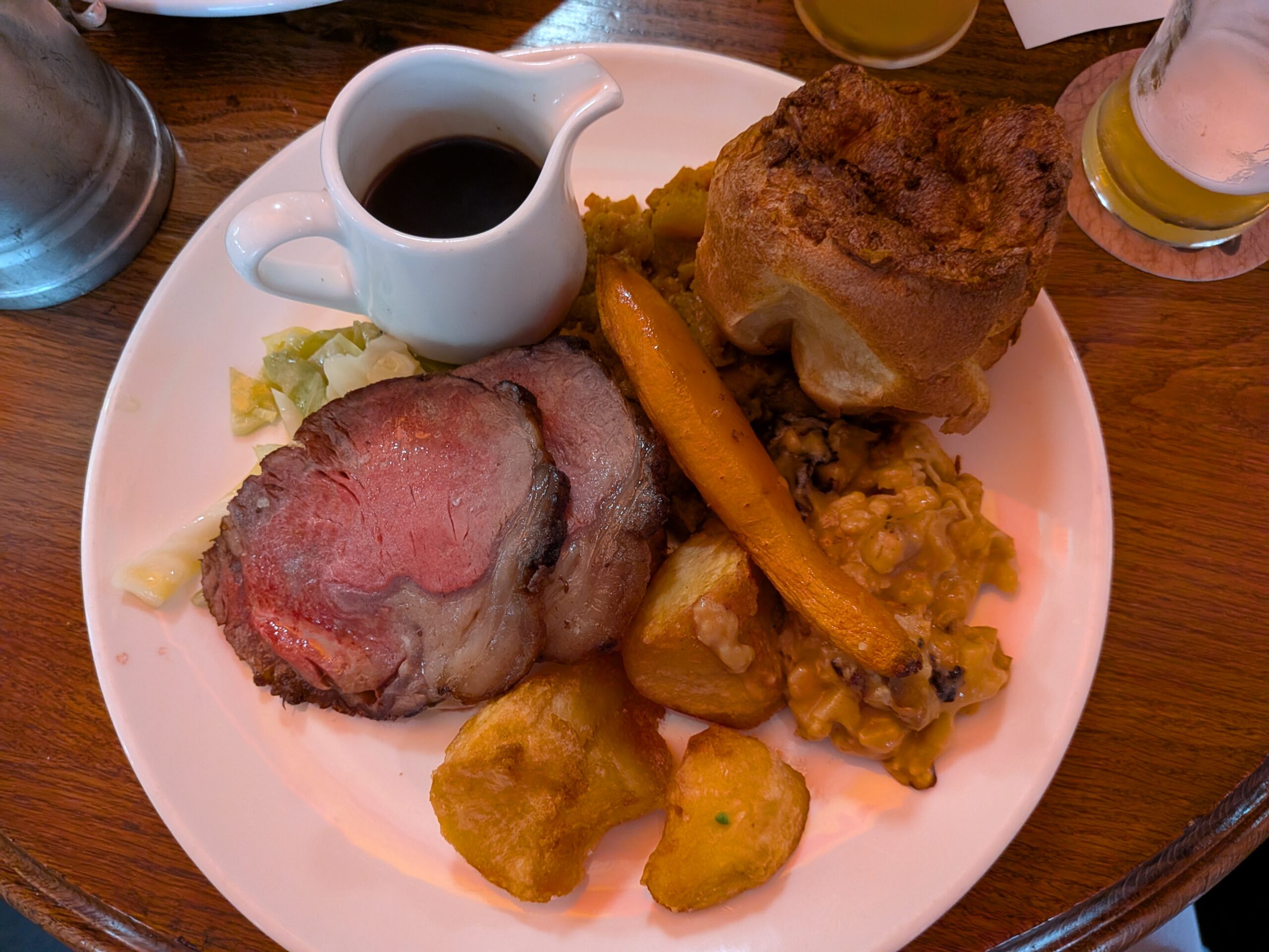 The roast dinner is good. Some of the best roast potatoes of the year – really gold standard stuff, and everything else was broadly good – maybe only the yorkie needs a bit of work.