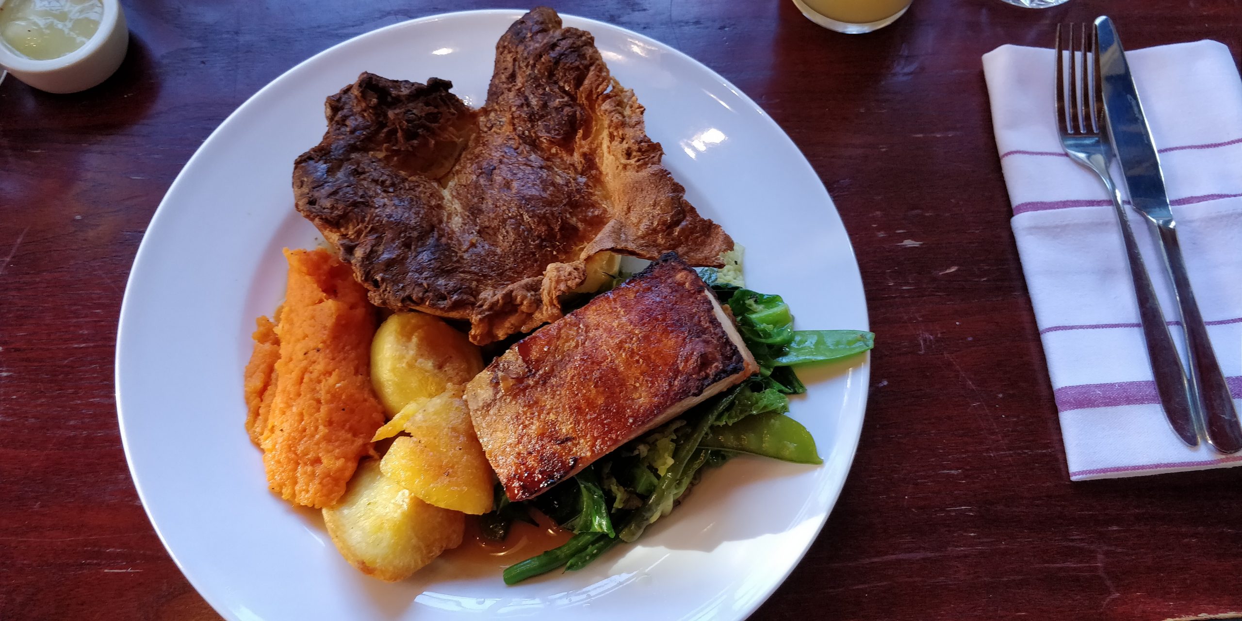 On the menu was beef, chicken breast, lamb shank or pork belly, priced between £15 and £17.50. I chose the pork belly and ordered a Yorkshire pudding – well, it is National Yorkshire Pudding Day (Google is so going to love this post).