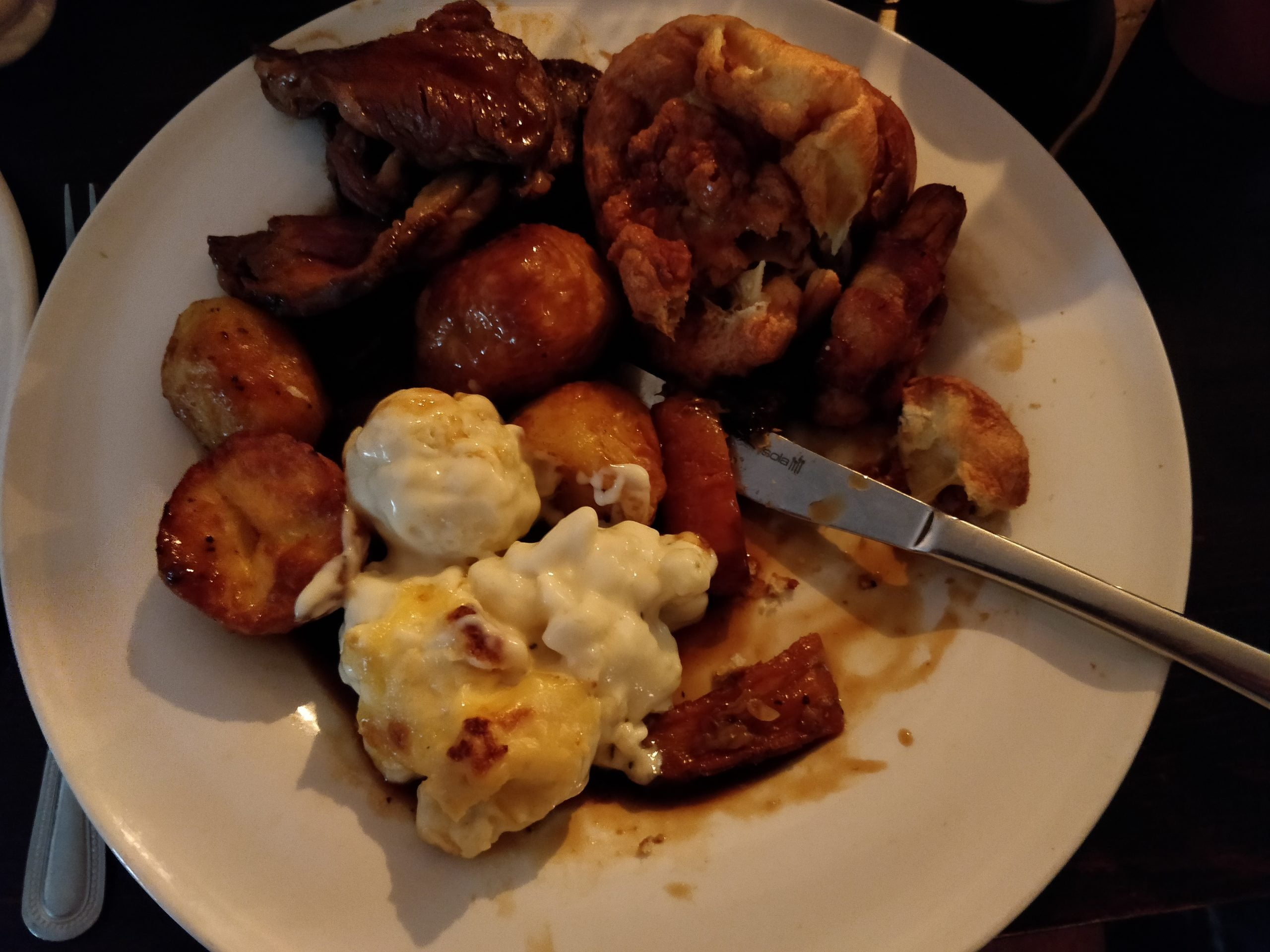 Anyway, so one of the roast potatoes was really good – crispy on the outside, soft enough on the inside. Some others on the table also reported one really good roast potato.