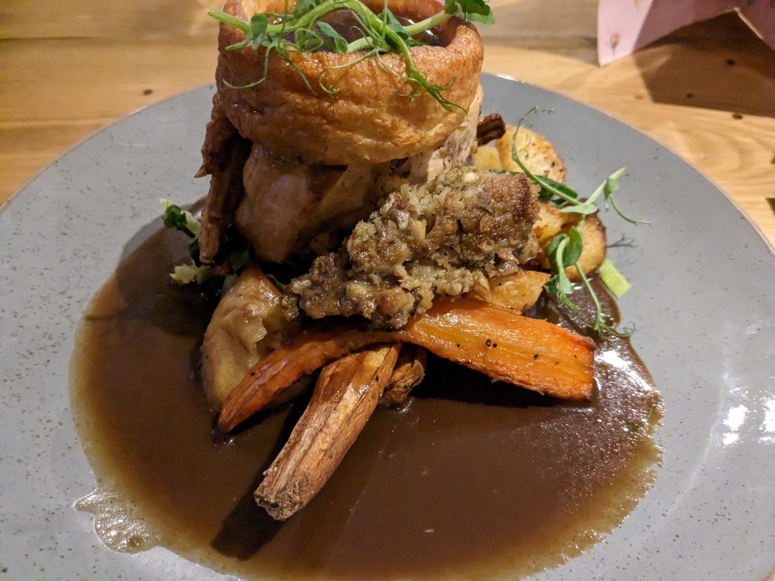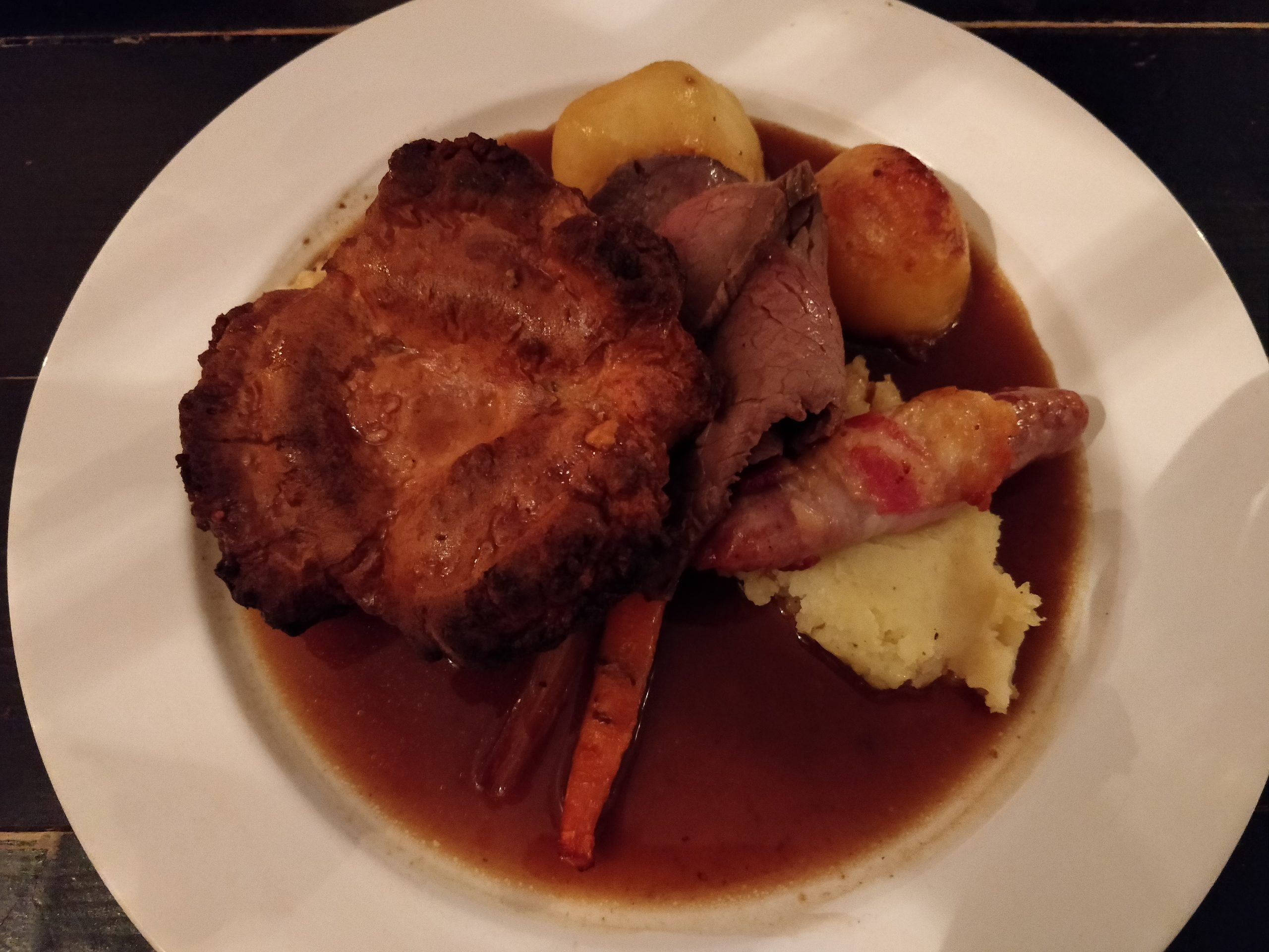 Loathed: Yorkie was a bit dry, roasties were soft but not crispy. All very acceptable.