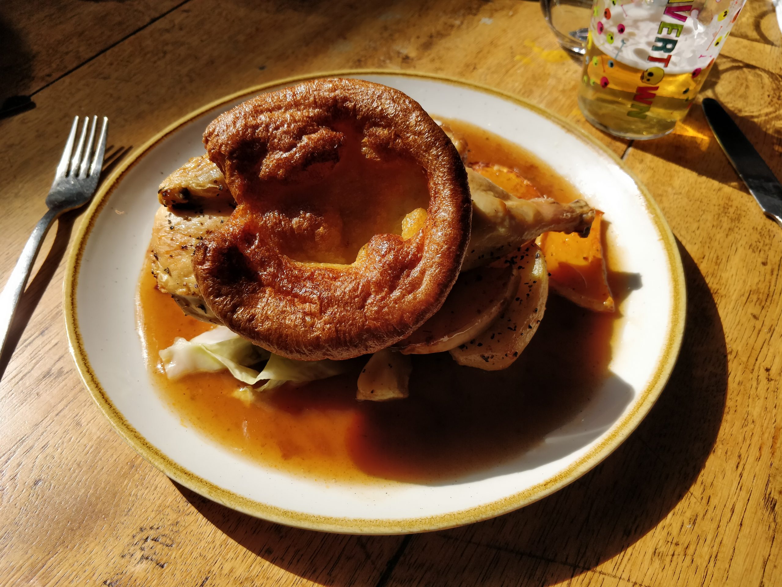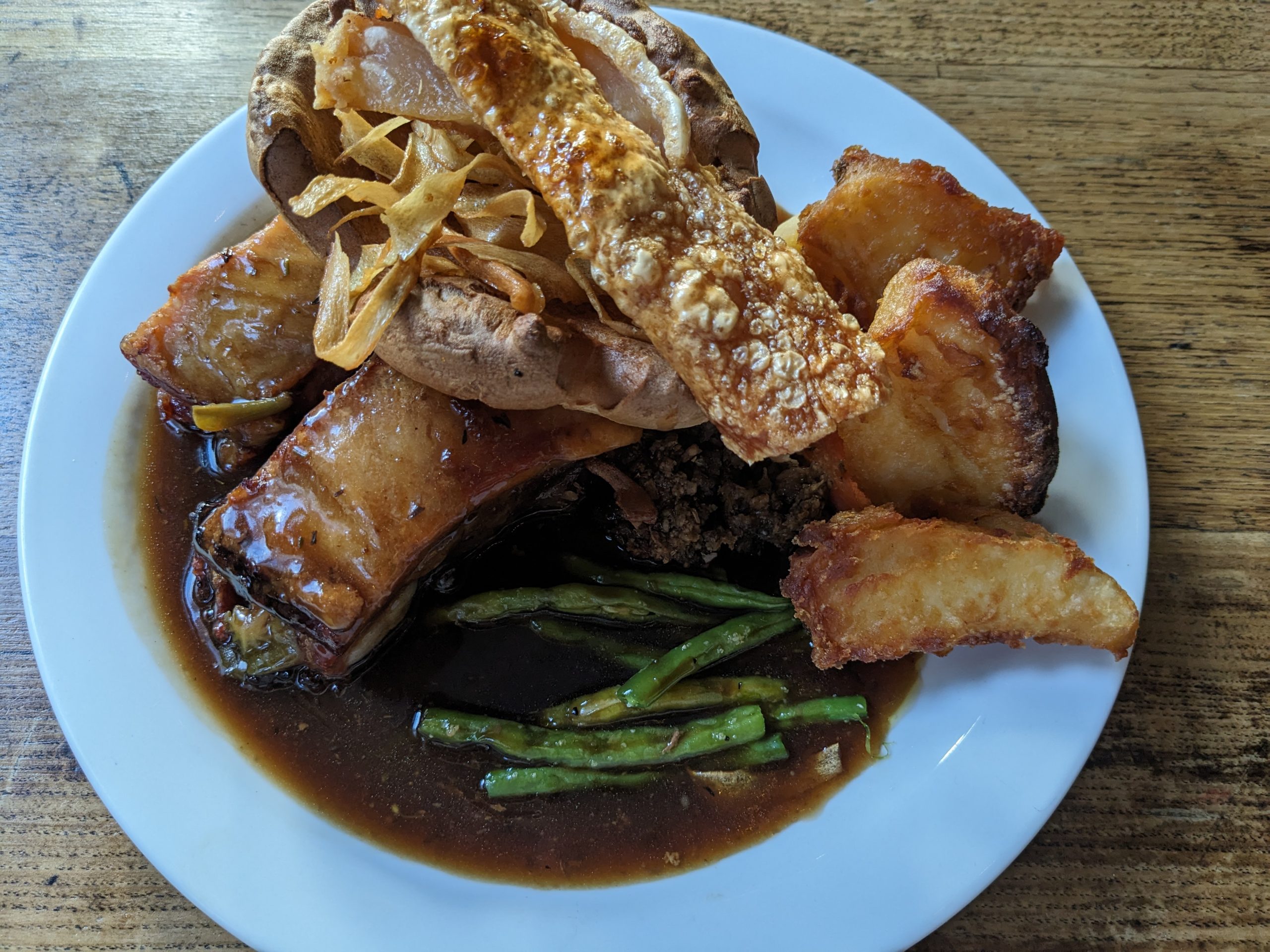 Although it comes with bottomless Yorkshire puddings and roast potatoes. Which was the absolute last thing I needed. Though “proper gravy”. Where have I heard that before?