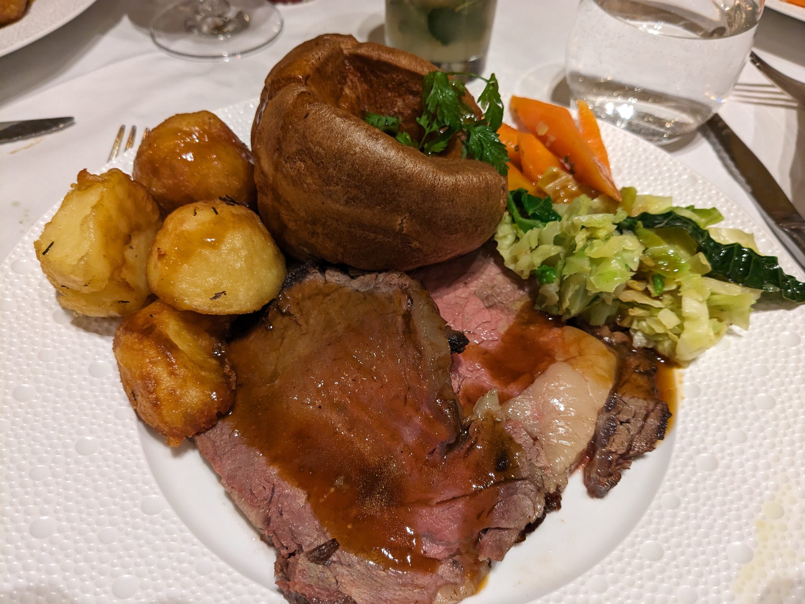 So the Yorkshire pudding was large and good. Large and good. By time all the gravy had soaked into it, it was proper soggy on the bottom, the sides were the right level of crisp. This was actually good.