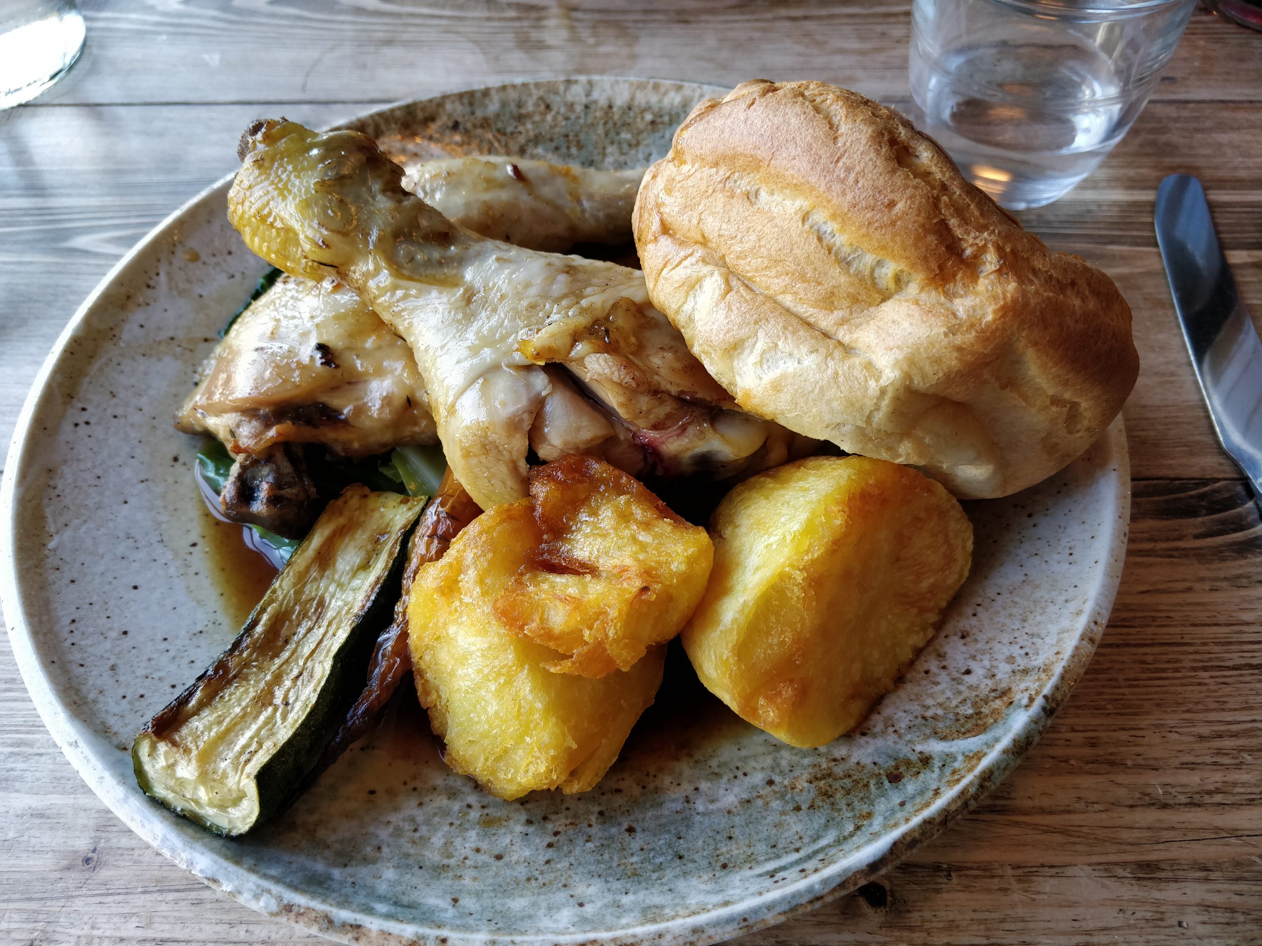 This Yorkshire pudding was dry until you put extra gravy on it, in which case it is a little soft and fluffy. I think pointless and stupid, but my other new friends like it more than me.