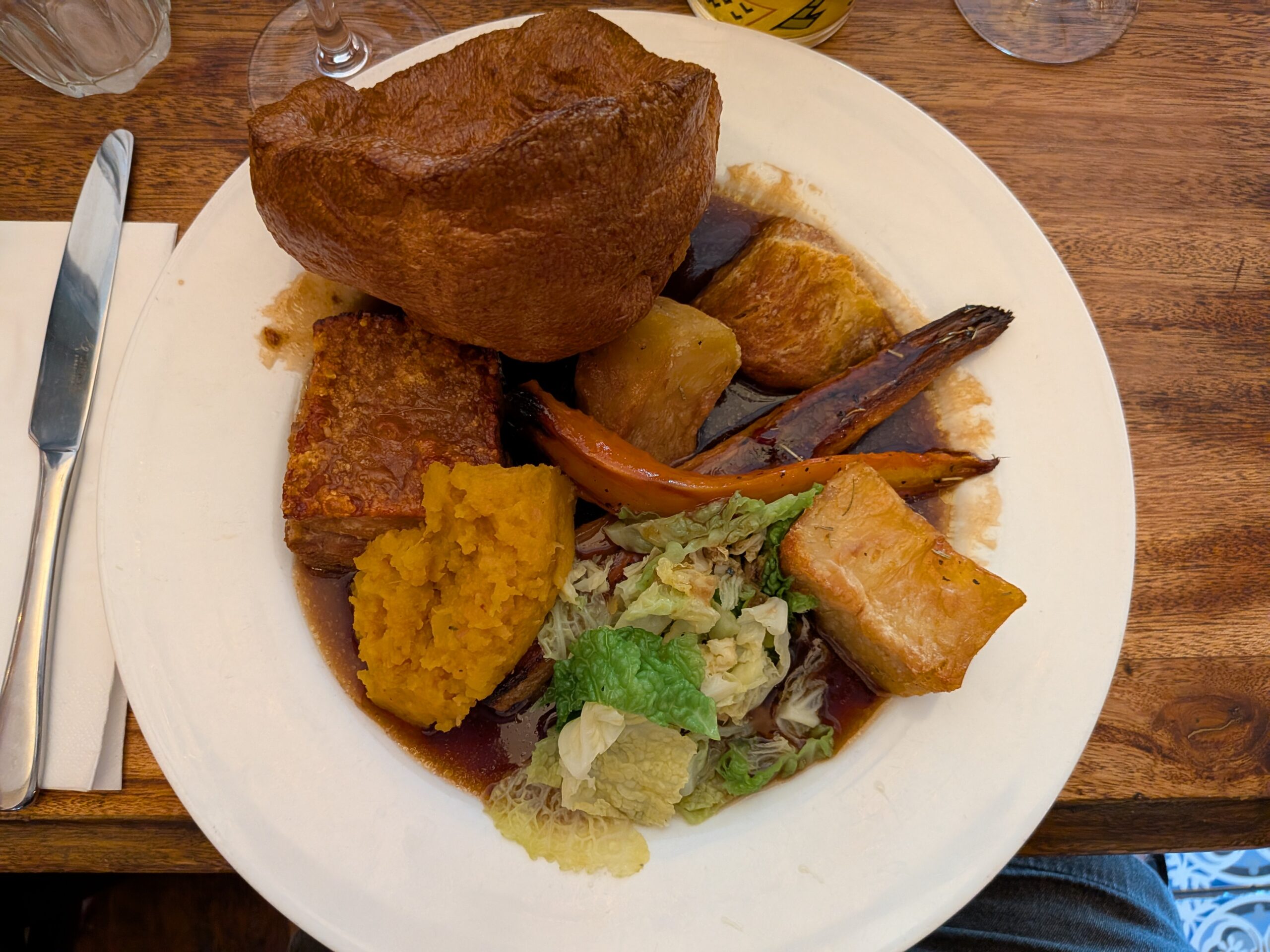 It was several years since I’ve had a vegan roast dinner, and several weeks since I’d had pork belly – so I went with the pork belly.